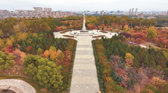 In late autumn, the Changchun World Sculpture Park is dressed in colorful clothes
