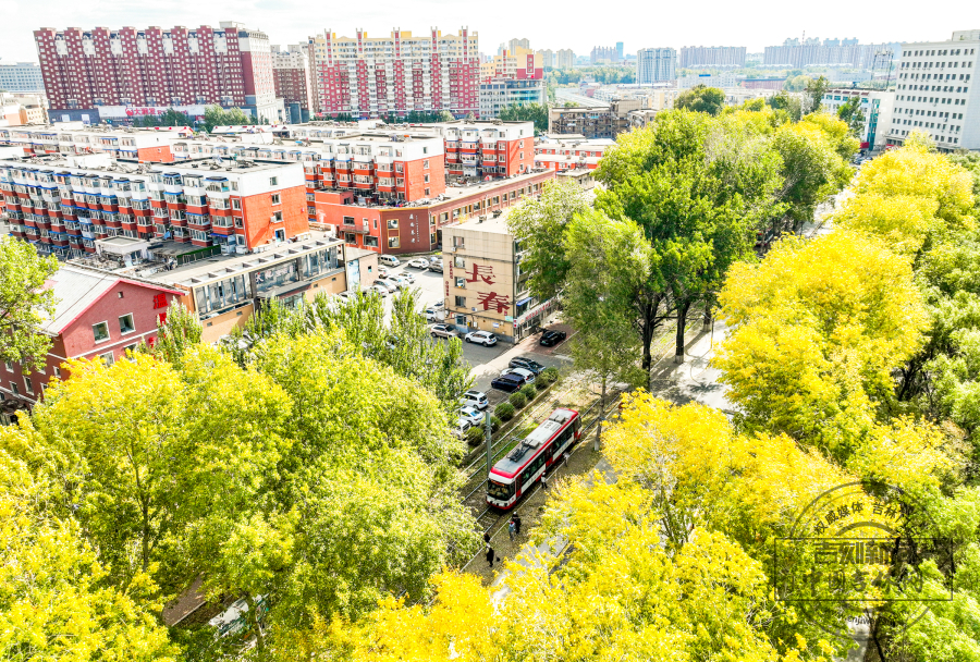 The tram line 54 in Changchun is dressed in golden attire, ushering in the most beautiful autumn scenery.