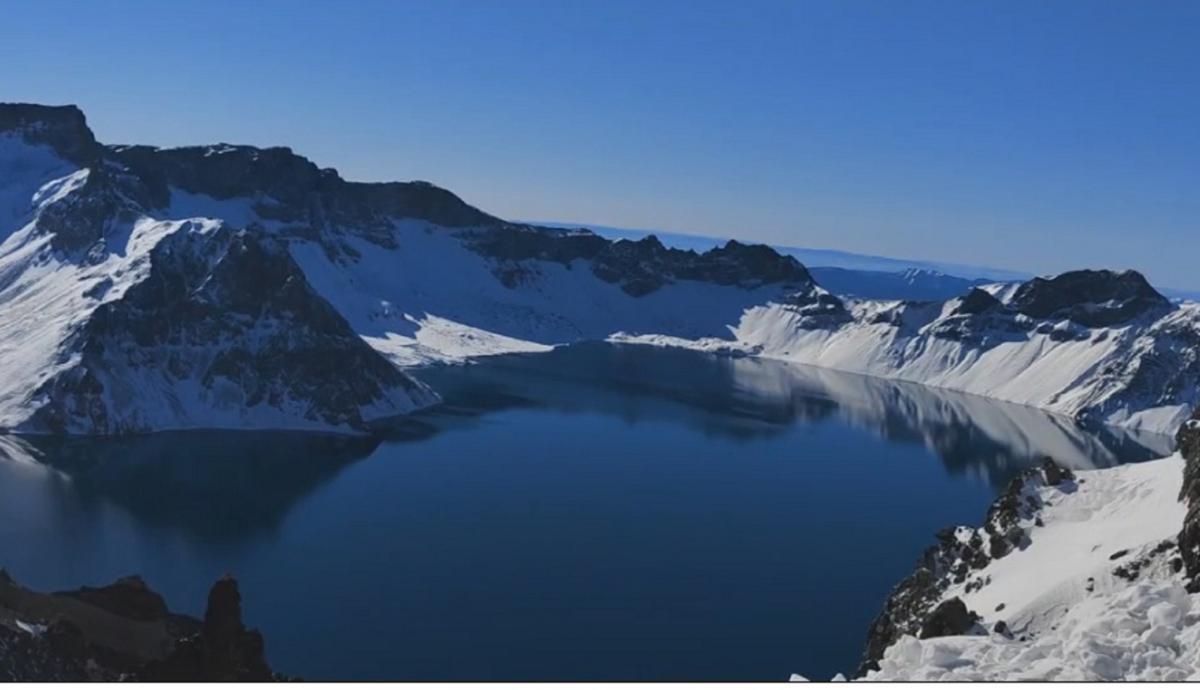 Many tourists photographed the blue Tianchi Lake, which is located in the volcanic cone of the mountain's main peak.